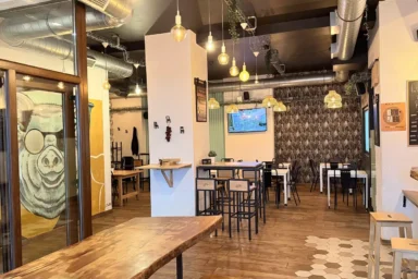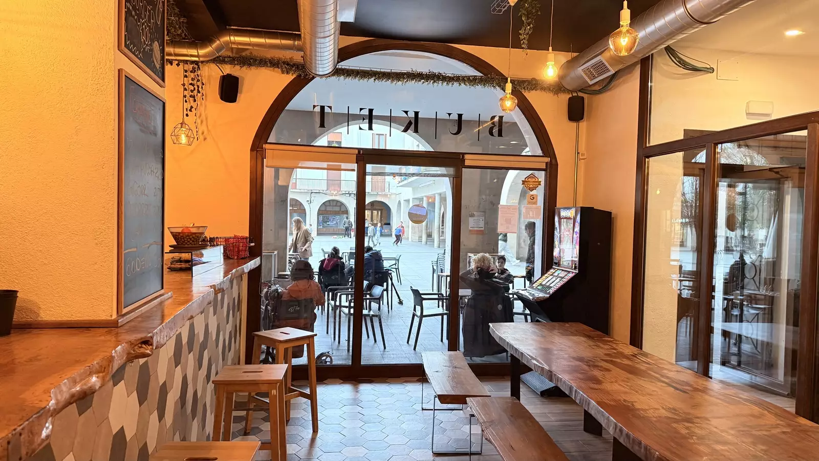 Buket Gastrobar se encuentra en el corazón de Aretxabaleta, en un local de ambiente moderno ambientado para bebidas, tapeo y encuentros informales. Su propuesta se basa en producto de calidad —especialmente cerdo ibérico y hamburguesas creativas—, acompañado de una buena selección de cervezas y vinos. El espacio combina tradición y estilo contemporáneo, siendo ideal tanto para un vermú entre amigos como para cena más animada. Destaca también por su barra amplia, servicio ágil y decoración cuidada que crean un ambiente distendido. Desde media mañana abre servicio de bar-restaurante, extendiéndose hasta la madrugada los días de mayor tránsito.