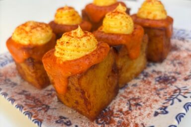Patatas crujientes por fuera y melosa or dentro,u all i oli casero brutal, una salsa bravas casera como mandan los cánones y rematadas con un toque de Pimentón de la vera, pero mejor que te lo cuente…Es que las pruebes!!!!