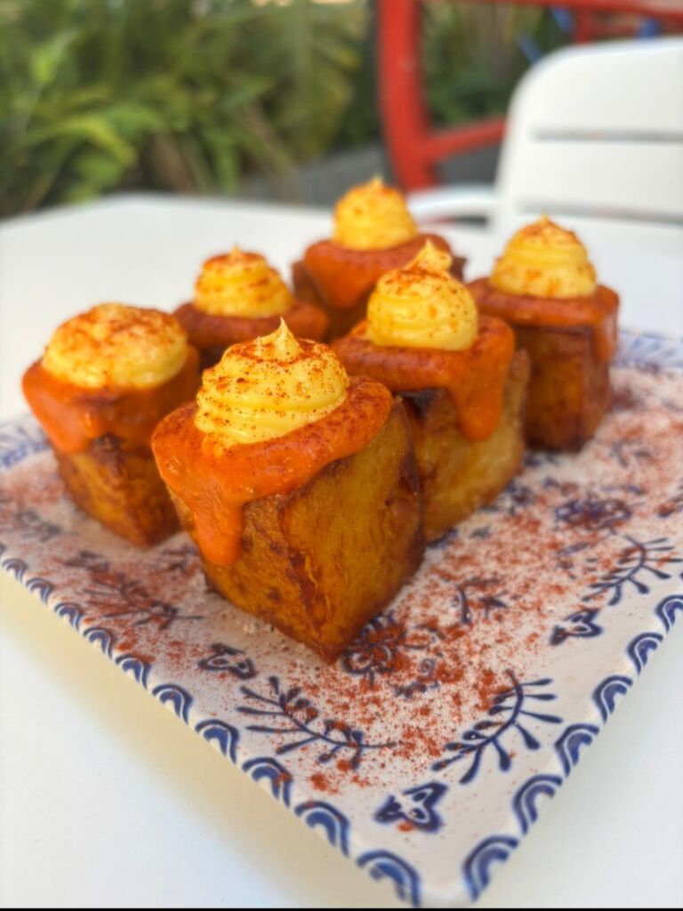 Patatas crujientes por fuera y melosa or dentro,u all i oli casero brutal, una salsa bravas casera como mandan los cánones y rematadas con un toque de Pimentón de la vera, pero mejor que te lo cuente…Es que las pruebes!!!!