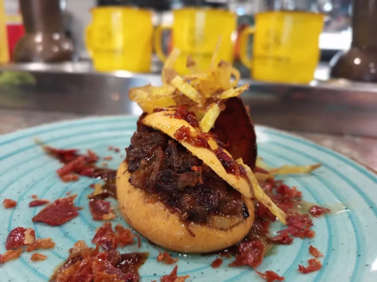 Minipetisu de churrasco de ternera guisada en fogones tradicionales, con frutas nacionales y pico fino,acompañado de crujientes variados que hará una explosión de sabores,regado con reduccion de varios tipos de nuestro increible vermú PicoFino