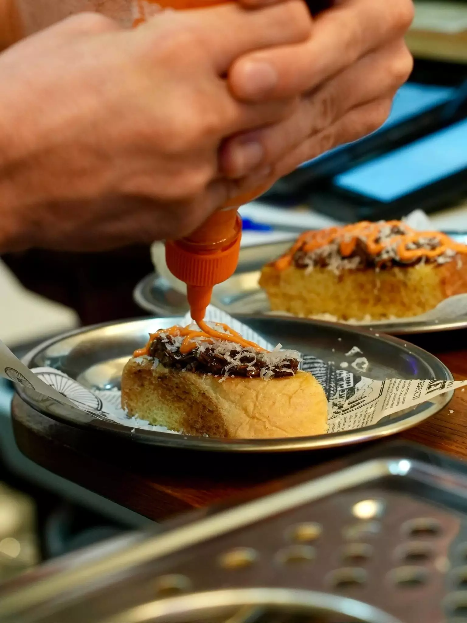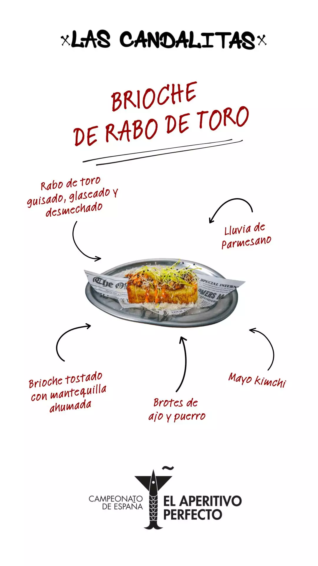 Pan brioche tostado con mantequilla ahumada, suave y fragante, que acoge un rabo de toro guisado lentamente, desmechado y glaseado hasta el brillo del caramelo salado.