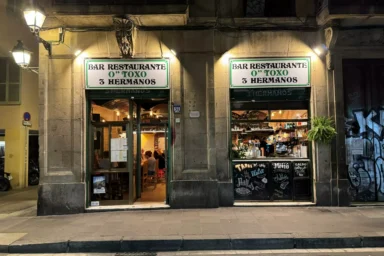Ubicado en el animado barrio del Raval de Barcelona, O’Toxo Tres Hermanos es un espacio ideal para iniciar la tarde con buen pie. Su ambiente acogedor y auténtico invita a detenerte en la barra para pedir un vermú o copa de vino, acompañado de una selección de tapas como croquetas caseras o calamares a la romana. Entre risas y brindis, se convierte en el preludio perfecto para una velada relajada, donde compartir bocado, disfrutar sin prisas y sumergirse en la vida del barrio.