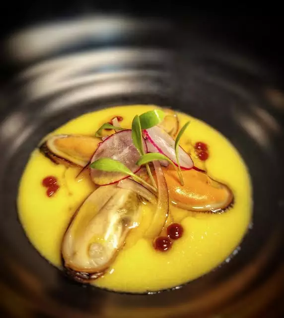 Se trata de un aperitivo muy fresco, ligero, con los toques ácidos del aguachile, dulces del maíz y marinos del mejillón. Ideal para abrir el apetito o degustar con una caña.